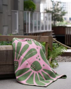 • Nydelig stort, mykt og deilig ullpledd med mønsteret SOMMER med søm rundt pleddet