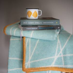 • Nydelig stort, mykt og deilig ullpledd med mønsteret STREK og kantet i kontrastfarge.